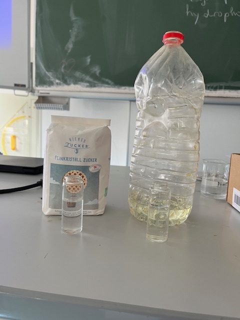 Die 4B und die 4E machen mit beim 18. Projektwettbewerb des Verbandes der Chemielehrer:innen Österreich mit dem Motto „Green Chemistry“. Wir haben uns für das Thema „Wasser“ entschieden und so haben die Schülerinnen und Schüler schon fleißig Referate gehalten, Filme gedreht und natürlich Versuche gemacht. Anbei Fotos von der Bestimmung der Wasserhärte und von Mischbarkeitsversuchen. Interessant war auch das Osmose-Langzeitexperiment (aufgenommen im Zeitraffer über Nacht) von Lara, bei dem man die Veränderung einer Kartoffel im Salzwasser beobachten konnte. Kilian zeigte, dass ein Ei in Salzwasser schwimmt – habt ihr das gewusst?