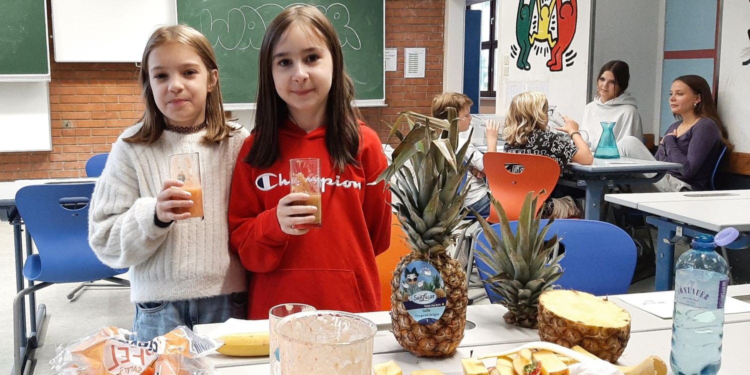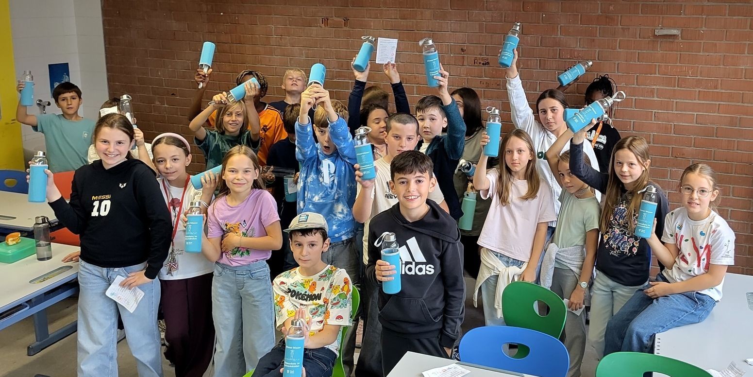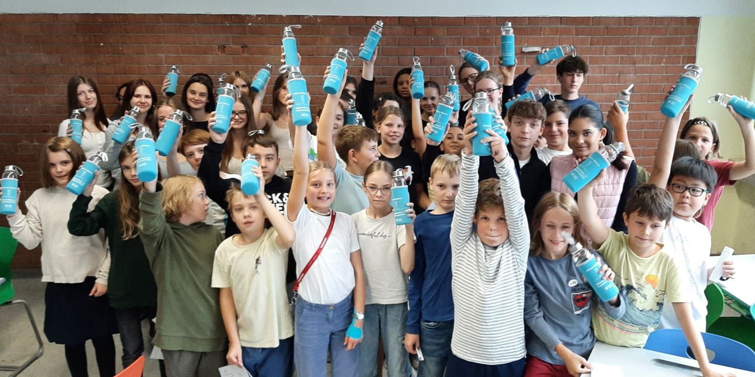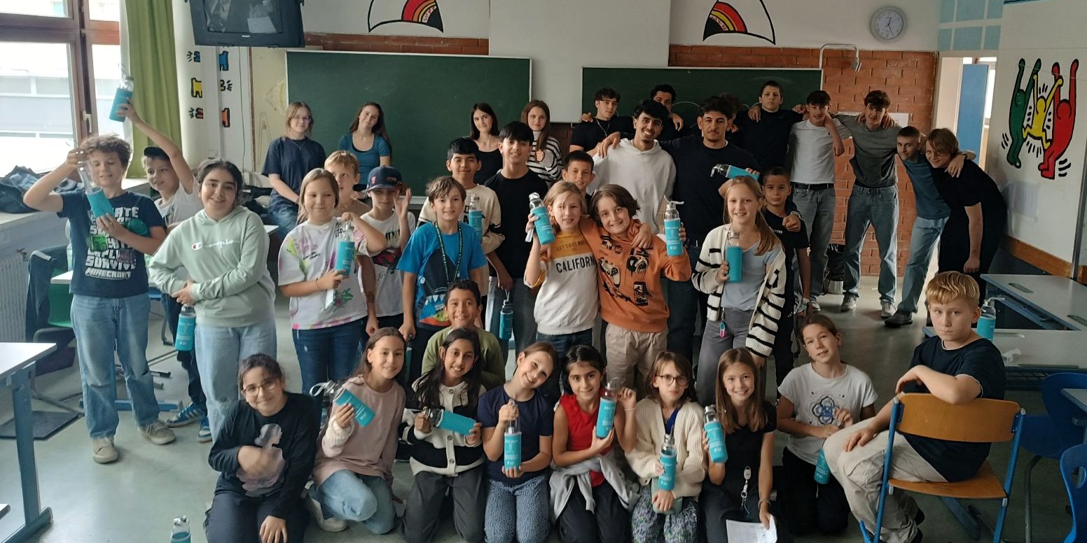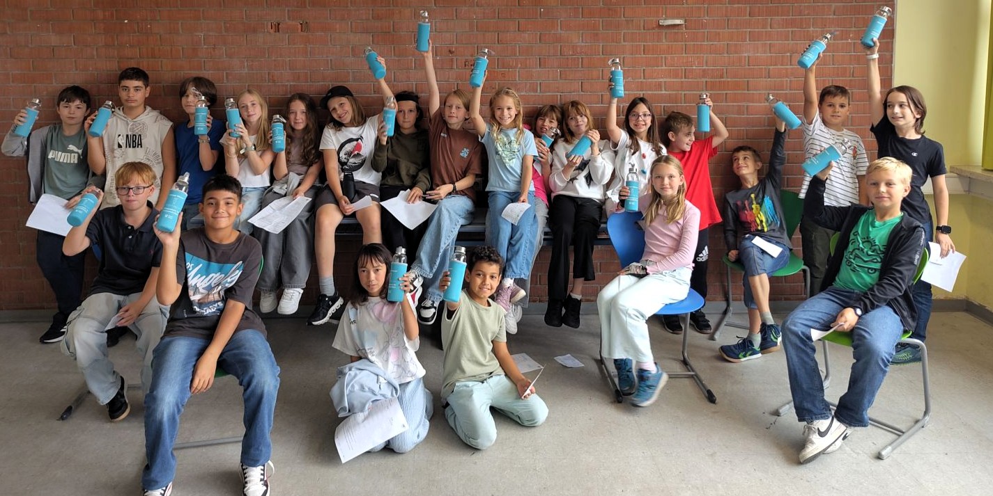 Im September nahmen unsere Schüler:innen der 1. Klassen wieder am Wasserworkshop teil. Zahlreiche Info- und Erlebnisstationen machten Lust aufs Trinken von Wasser. Von engagierten Schüler:innen der 7. Klassen gestaltet und betreut, vermittelten die Workshops den Erstklässler:innen mit viel Know-how und anschaulichem Material unter anderem, welche Getränke wie viel Zucker enthalten und woran man das erkennt. Frisch gemixte Smoothies weckten die Freude an gesunden Alternativen und an der Sportstation lernten die Kinder den Kalorienverbrauch bei einer zweiminütigen intensiven Bewegung kennen. Quizfragen sowie ein Check des eigenen Trinkverhaltens rundeten die zweistündigen Workshops ab. Als Belohnung gab es die Maroltinger Wasserflasche. Wir bedanken uns herzlich bei den Schüler:innen der 7. Klassen für ihr großartiges Engagement und bei den Erstklässler:innen für ihre aktive Teilnahme.