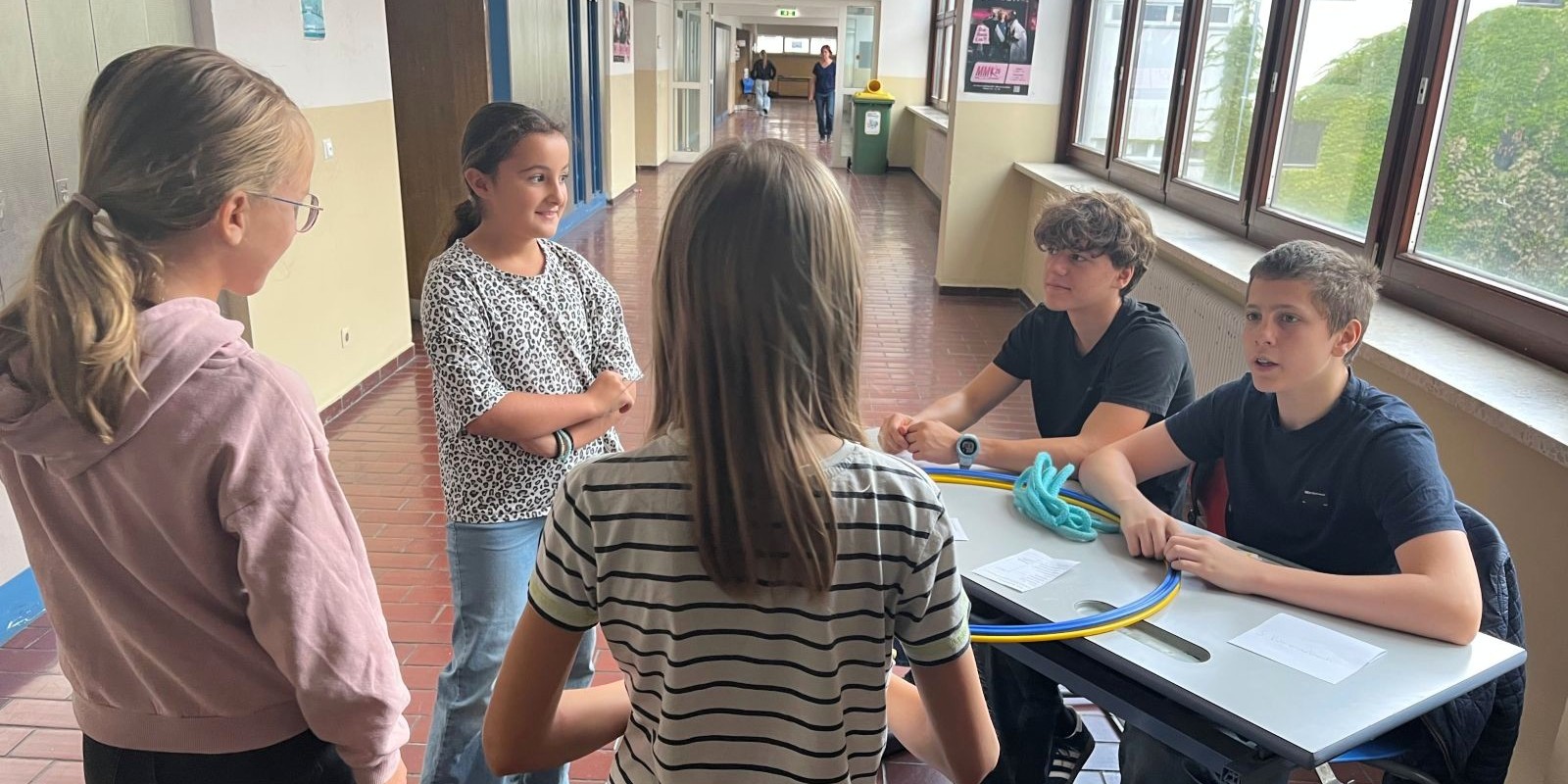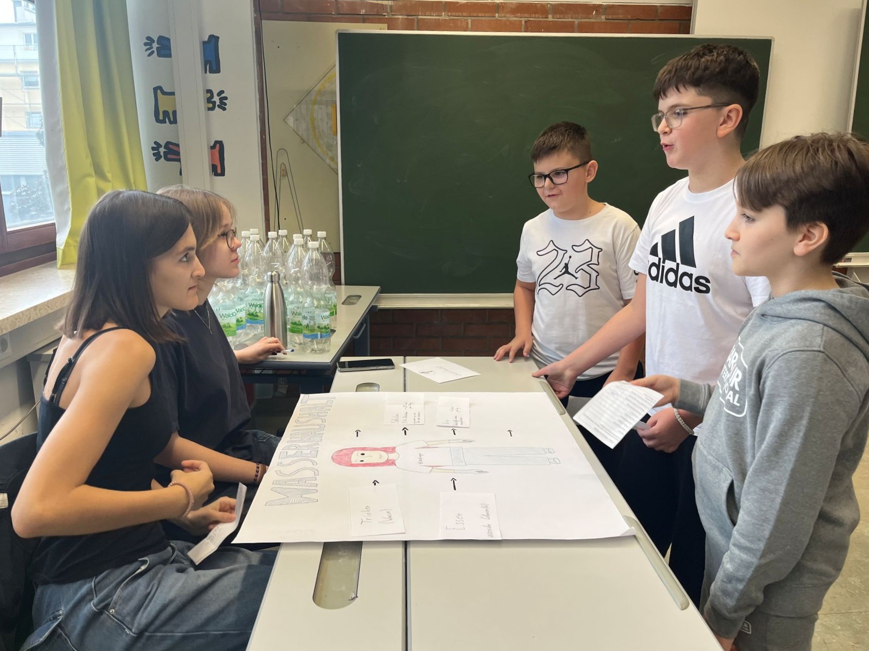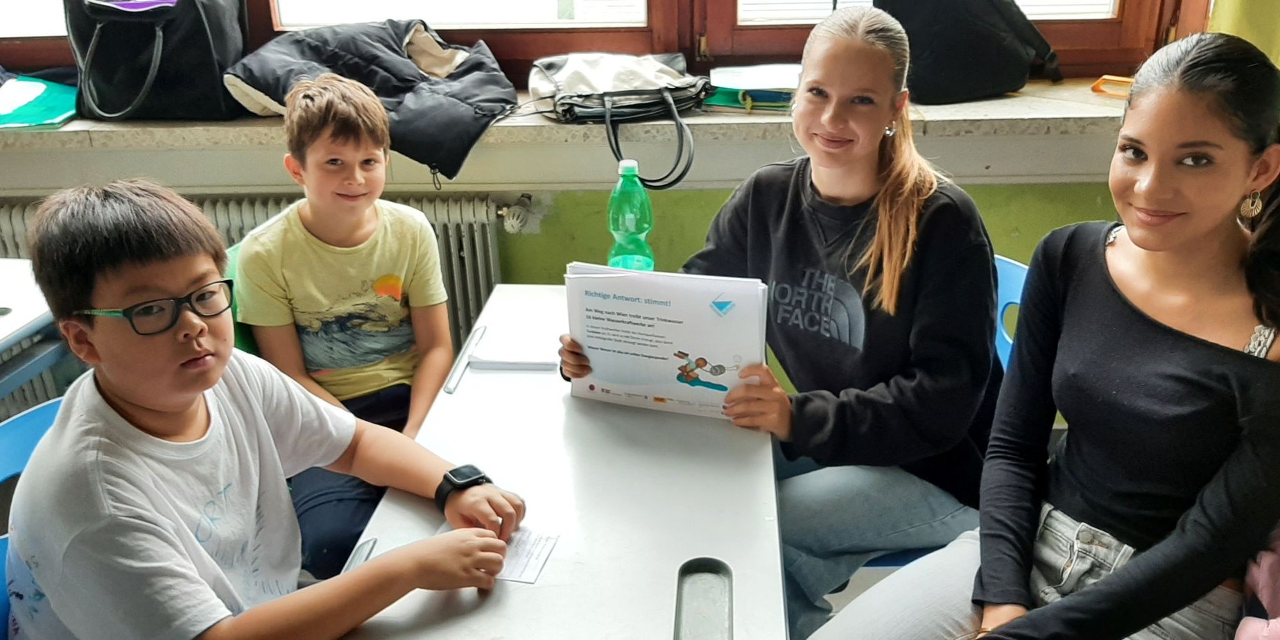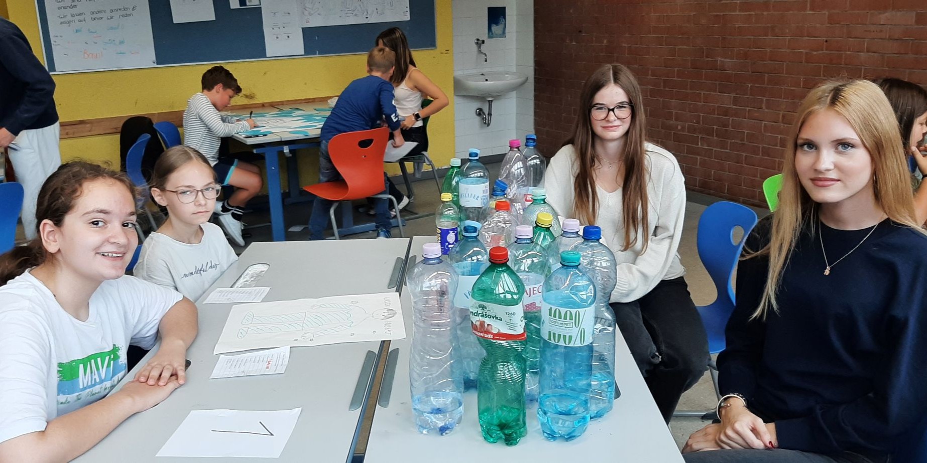 Im September nahmen unsere Schüler:innen der 1. Klassen wieder am Wasserworkshop teil. Zahlreiche Info- und Erlebnisstationen machten Lust aufs Trinken von Wasser. Von engagierten Schüler:innen der 7. Klassen gestaltet und betreut, vermittelten die Workshops den Erstklässler:innen mit viel Know-how und anschaulichem Material unter anderem, welche Getränke wie viel Zucker enthalten und woran man das erkennt. Frisch gemixte Smoothies weckten die Freude an gesunden Alternativen und an der Sportstation lernten die Kinder den Kalorienverbrauch bei einer zweiminütigen intensiven Bewegung kennen. Quizfragen sowie ein Check des eigenen Trinkverhaltens rundeten die zweistündigen Workshops ab. Als Belohnung gab es die Maroltinger Wasserflasche. Wir bedanken uns herzlich bei den Schüler:innen der 7. Klassen für ihr großartiges Engagement und bei den Erstklässler:innen für ihre aktive Teilnahme.
