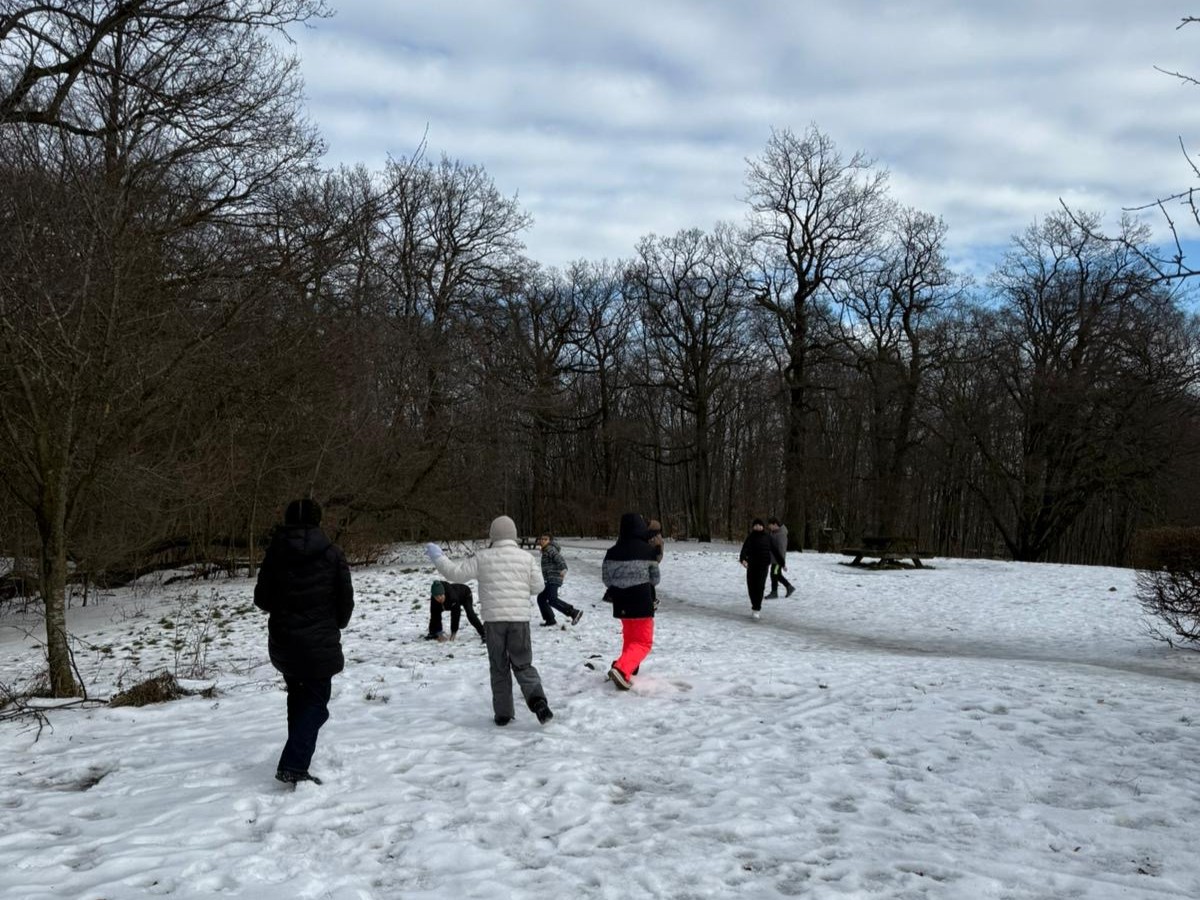 Gemeinsam ging es Ende Jänner mit der 2B an einem kalten und eisigen Tag zur Waldschule Ottakring. Der Aufstieg glich mehr einer Schlitterpartie aber die Schüler:innen hatten sichtlich Spaß und wurden von Hans, einem Waldexperten und Förster, entlang des Weges mit spannenden Informationen versorgt. Einige Vogelarten konnten wir auch sehen und hören, beispielsweise Kleiber, Misteldrossel sowie Schwarz-, Mittel-, Grün- und Buntspecht.
