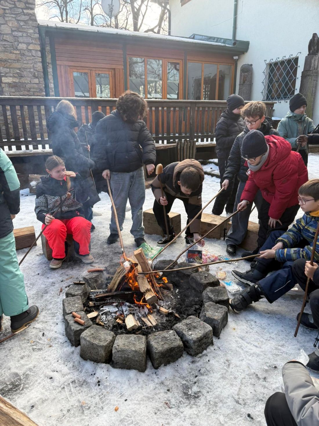 Bei einem Lagerfeuer haben sich die Schüler:innen aufgewärmt, gegrillt und im Anschluss noch eine Schneeballschlacht gestartet.