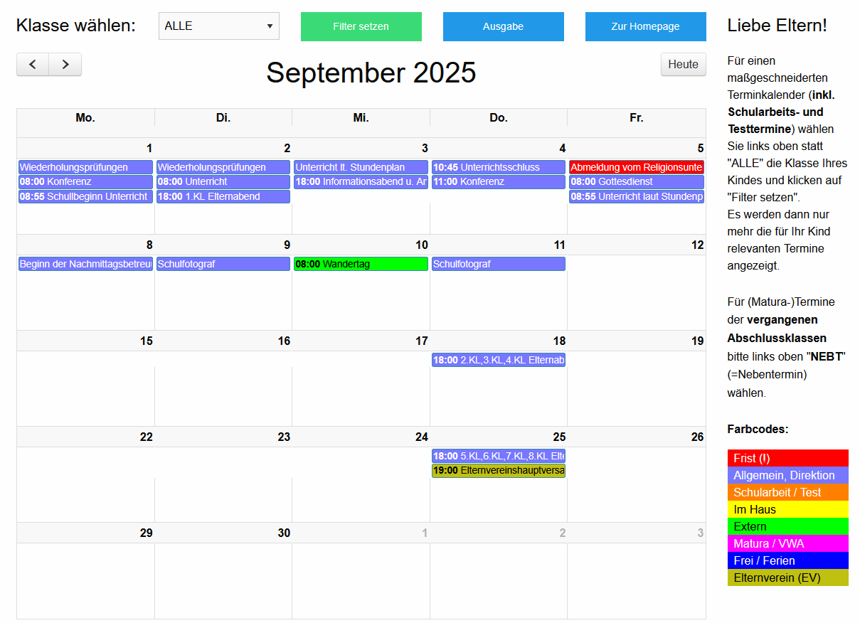 Mittwoch, 03.09. Unterricht lt. Stundenplan