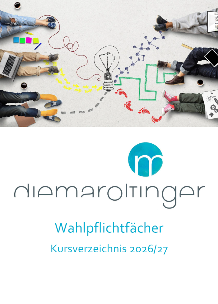 Im Kursverzeichnis 2026/27 sind die Angebote für das nächste Schuljahr aufgelistet und den jeweiligen Themenfächern zugeordnet. Im Sinne einer besseren Planung sind dort bereits die Kurse der nächsten zwei Jahre angeführt. Weiterführende Informationen zu unseren Wahlpflichtfächern (z.B. Anmeldung, erforderliche Mindestanzahl an Kursen etc.) findet ihr ebenfalls im Kursverzeichnis.